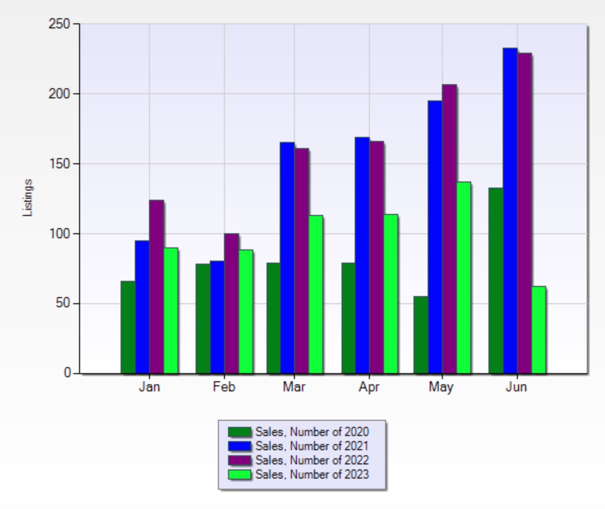 Excluding June, which has just begun, sales YTD are down approximately 30% from records in 2022 and 2021, and only slightly elevated from pre-pandemic levels.